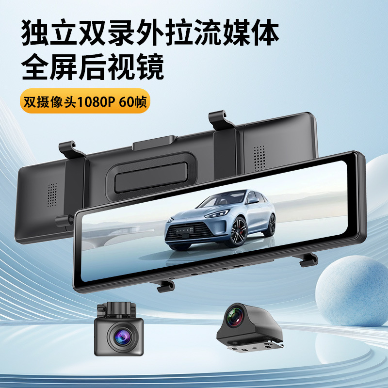 高清60帧12寸DVR全屏流媒体双外拉镜头1080P夜视后视镜行