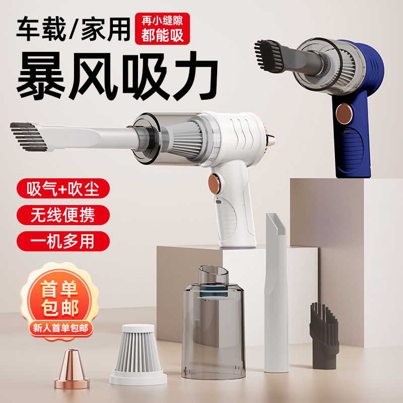 新款车载家用吸尘器吸吹抽充四合一大吸力真吸尘无线快充静音工作