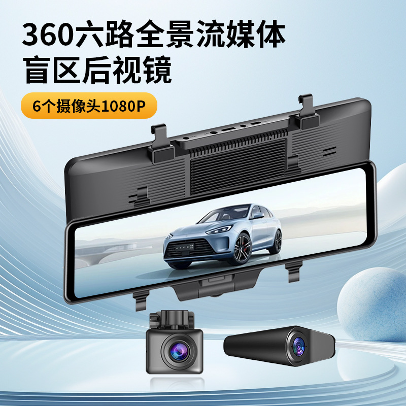 360度全景流媒体12寸夜视盲区视野5镜头1080P后视镜行车记