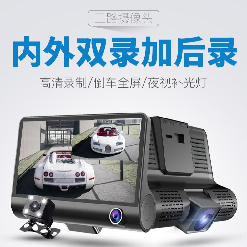 三镜头4寸高清1080P停车监控现货批发外贸热销重力感应行车记录