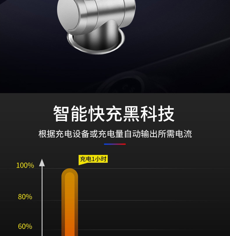戴升车载手机充电器QC快充一拖二点烟器USB充电口汽车充电器60W
