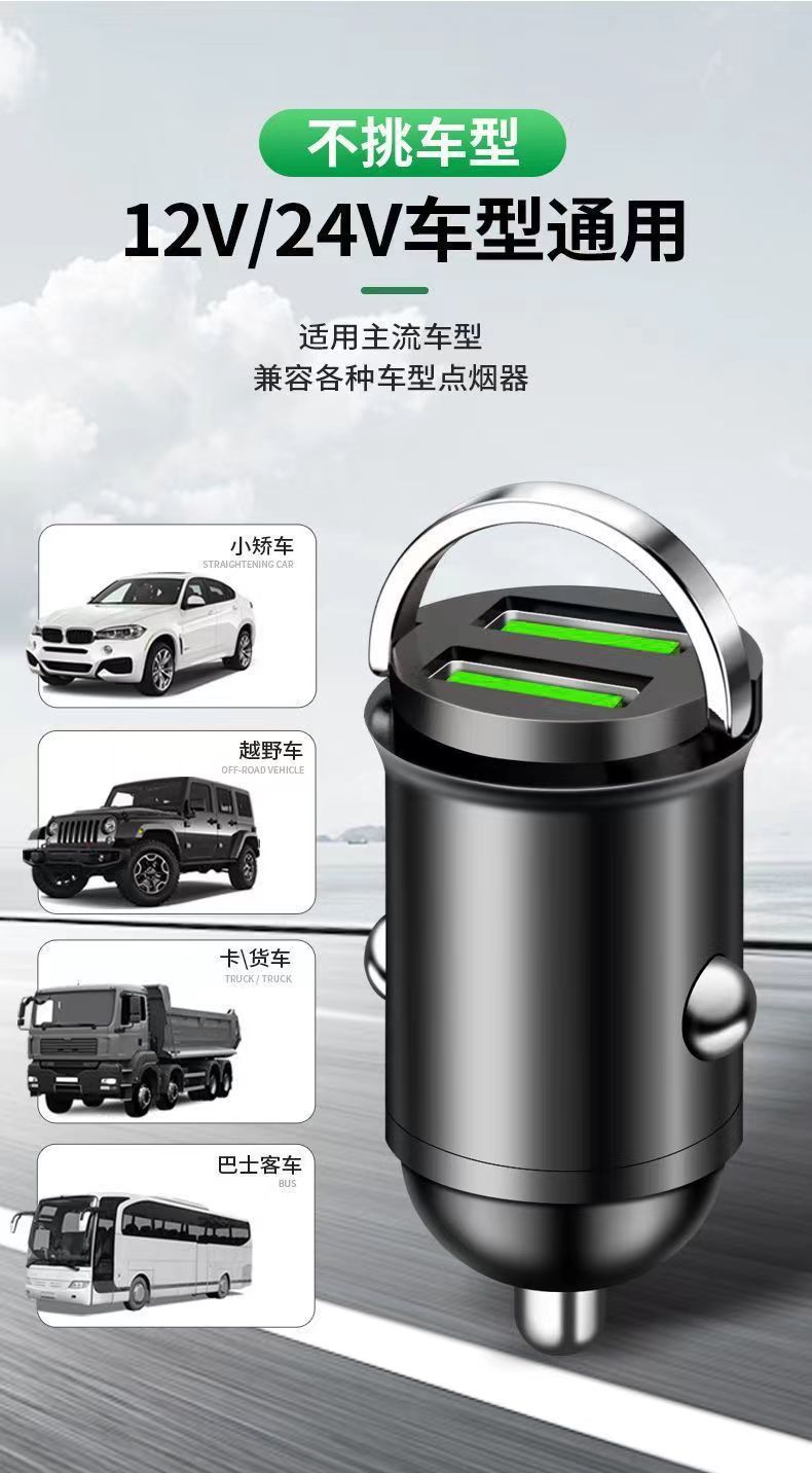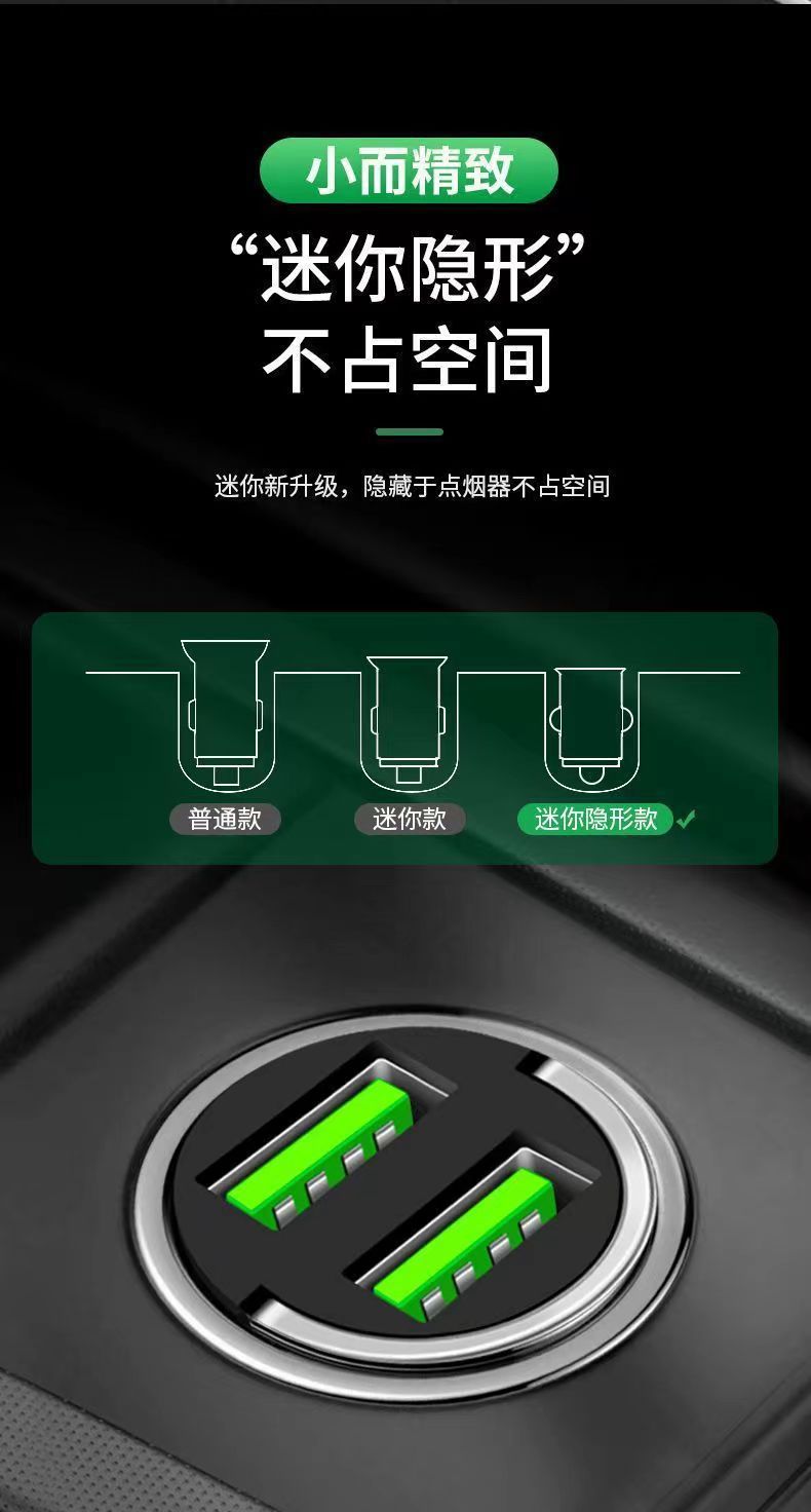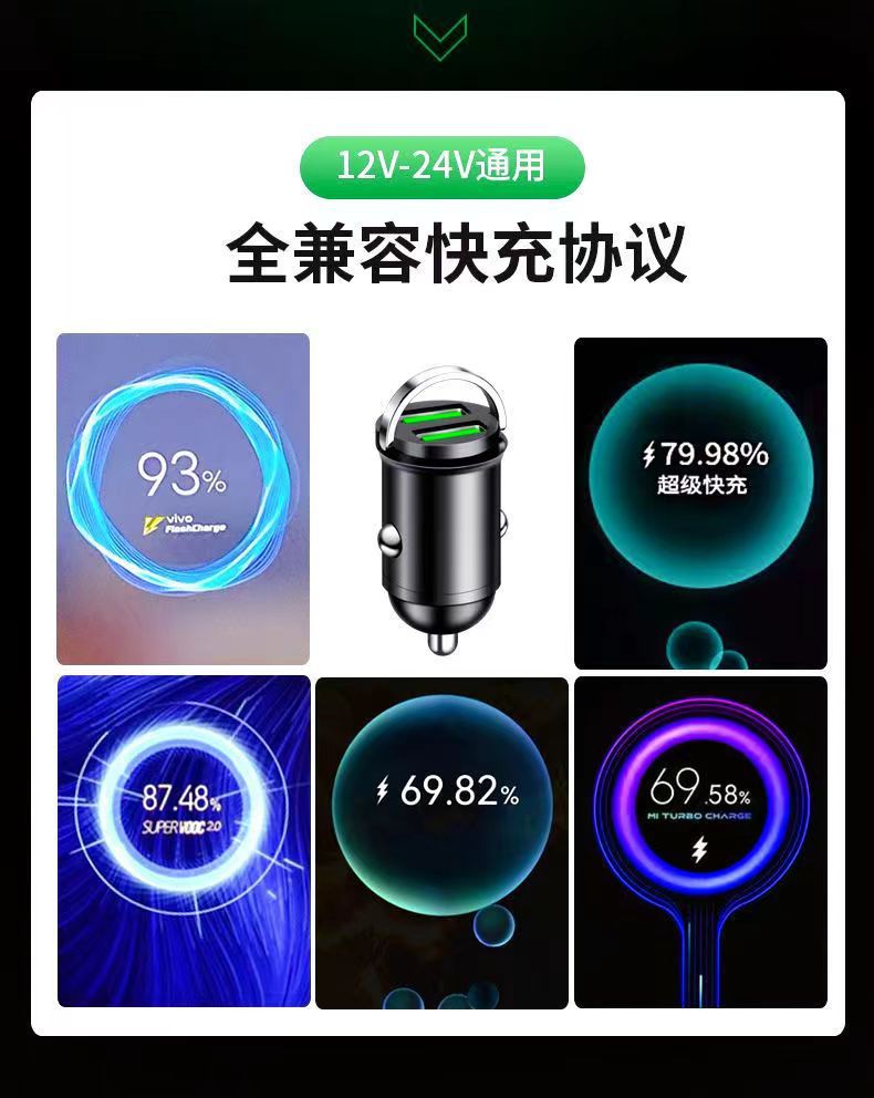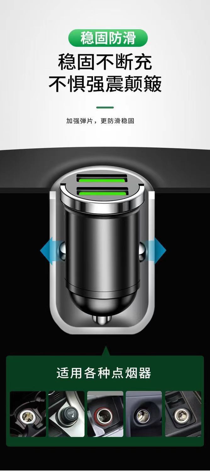 爆款车载手机充电器超级快充头迷你隐形锌合金适用苹果安卓闪充