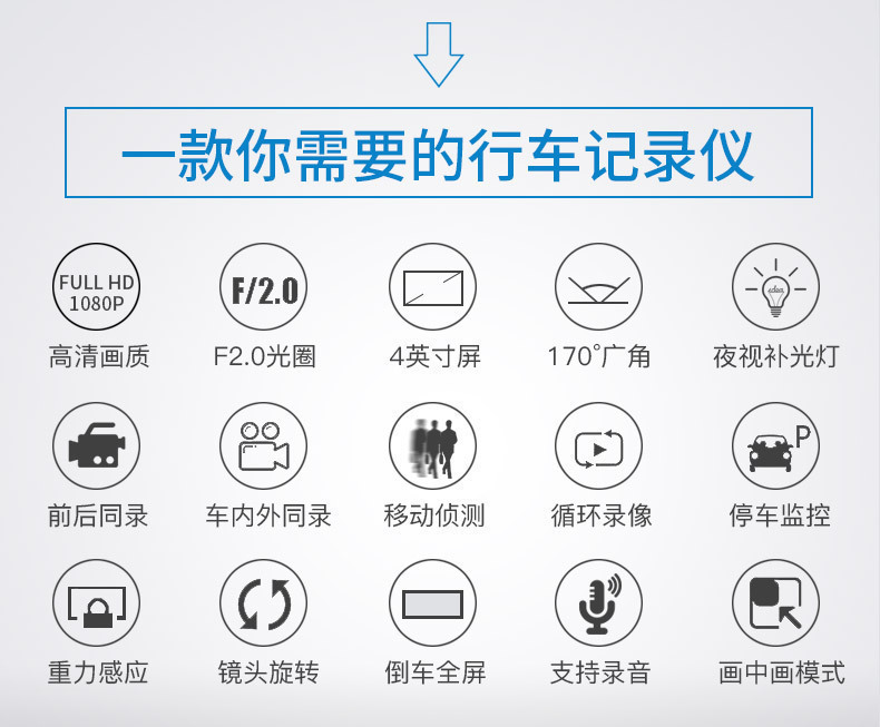 工厂批发高清前后双录触摸屏DVR大角度24小时1080P行车记录仪