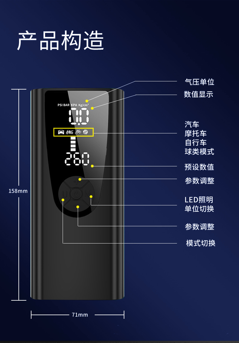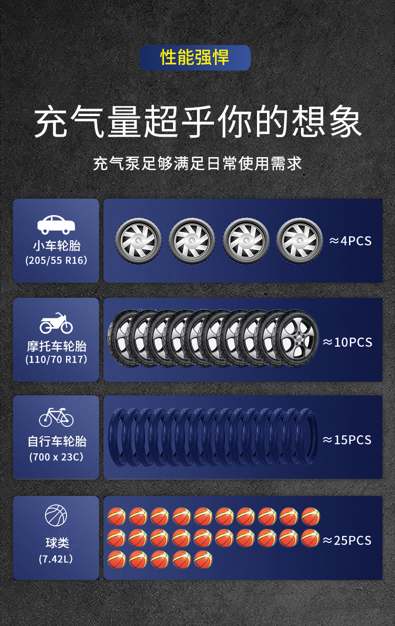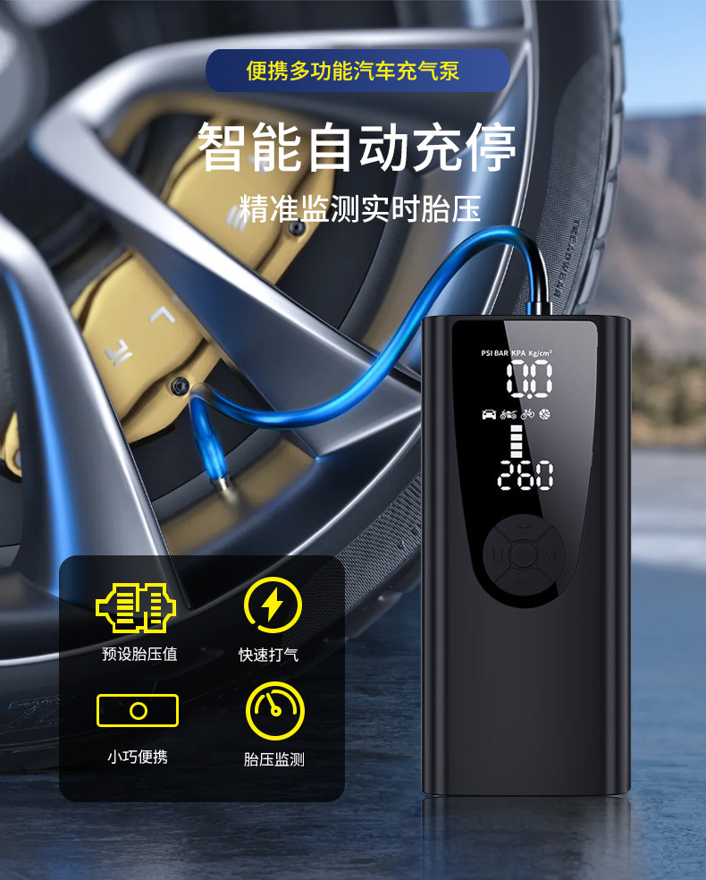 新款无线便携 户外大功率车载充气泵 自行车家用篮球自行车打气泵