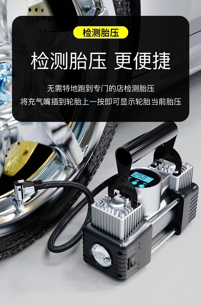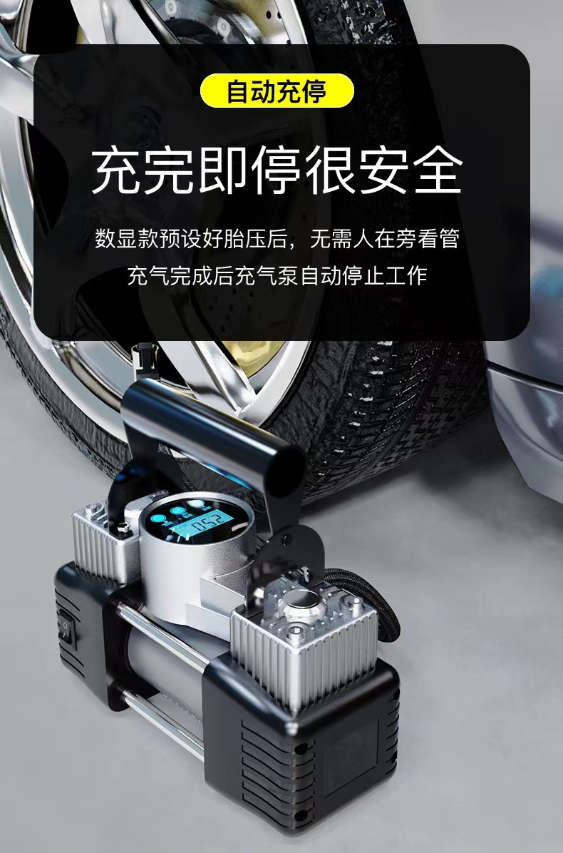 便携式车载数显充气泵 汽车轮胎打气泵 电动加气双缸12V充气泵
