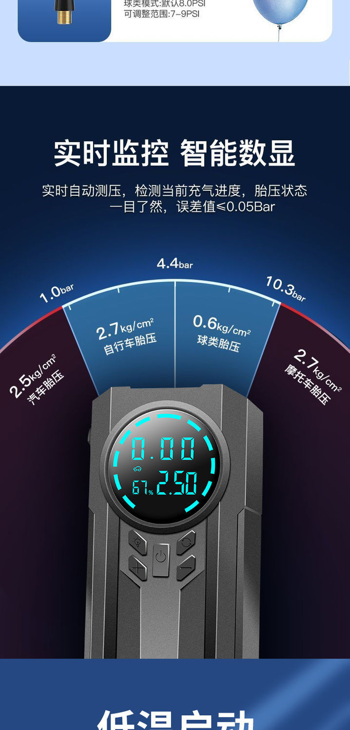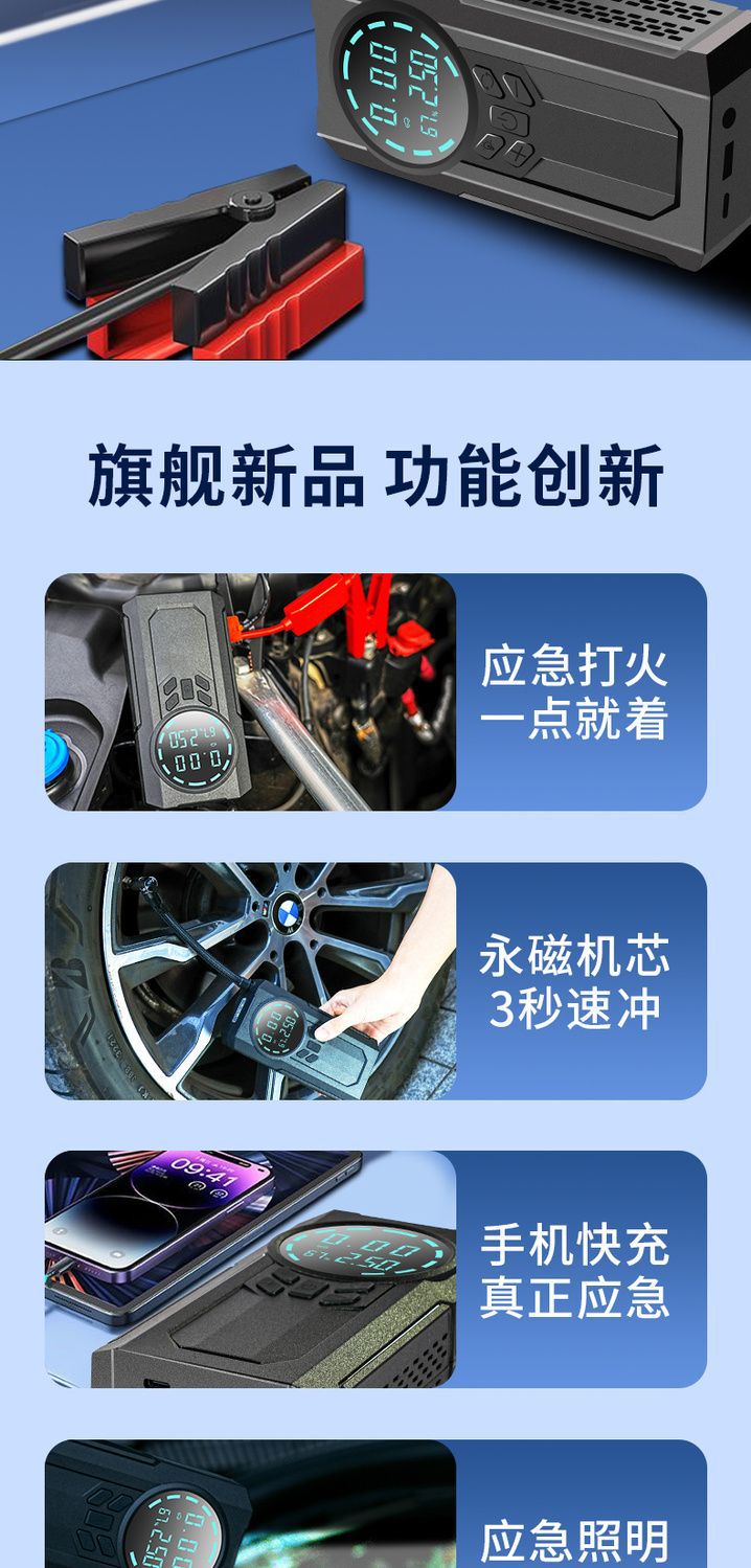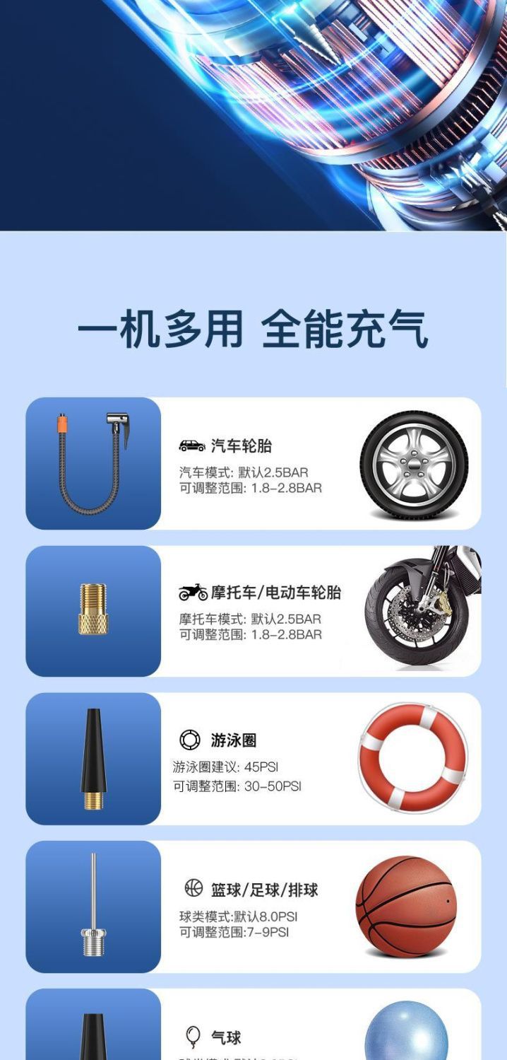 汽车带应急启动电源打气泵便携式轿车自行车电动车轮胎车载充气泵