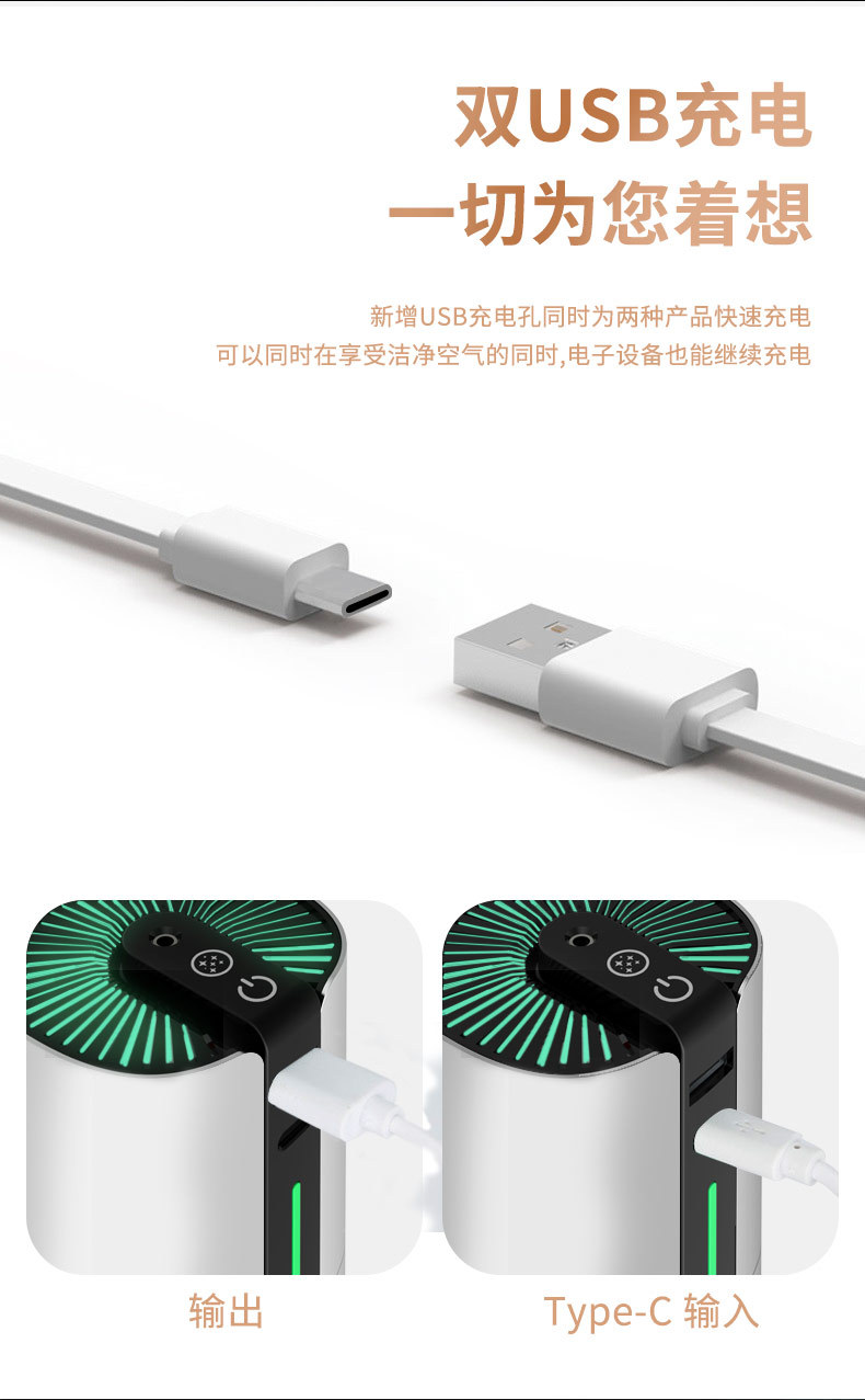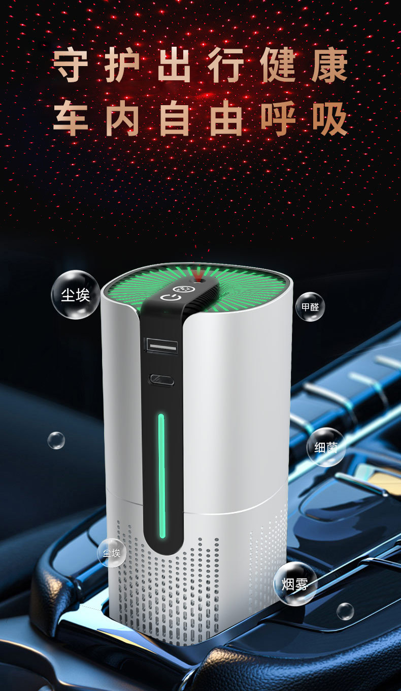 智能星空灯除甲醛烟雾检测办公桌面室内usb负离子车载空气净化器