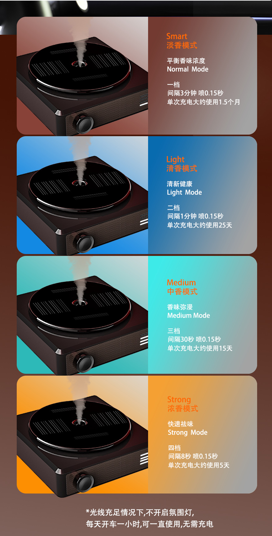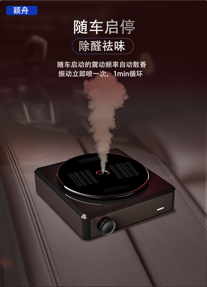 车载香薰机自动喷雾太阳能智能车用除异味空气净化器持久留香批发