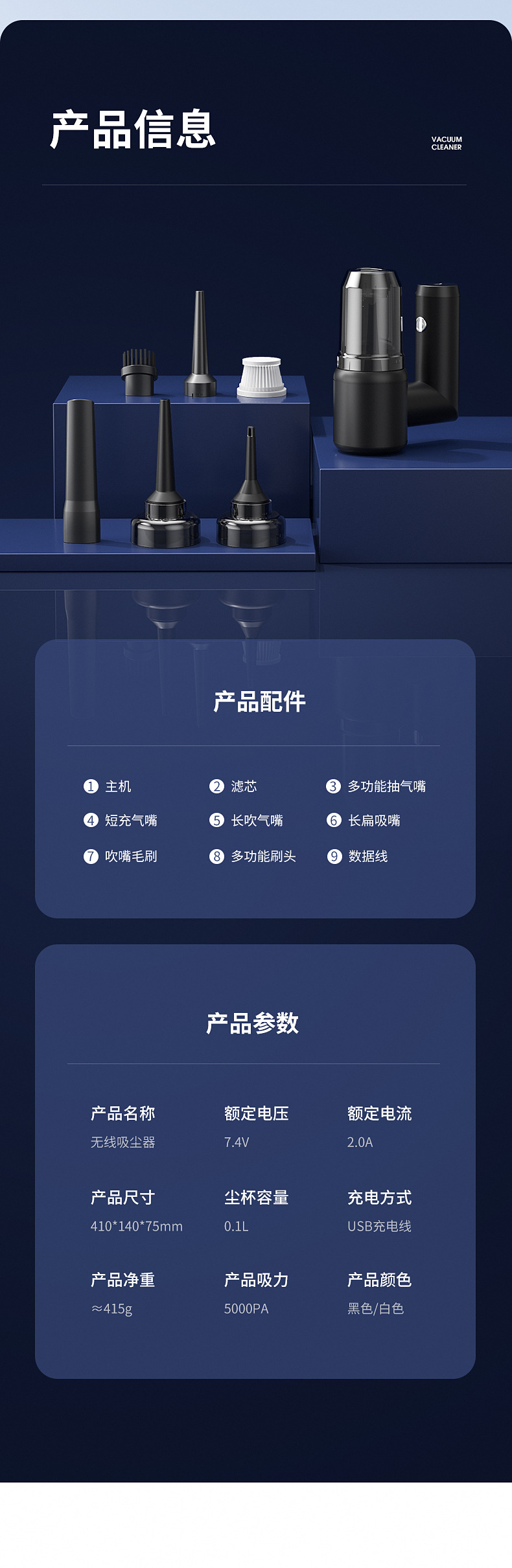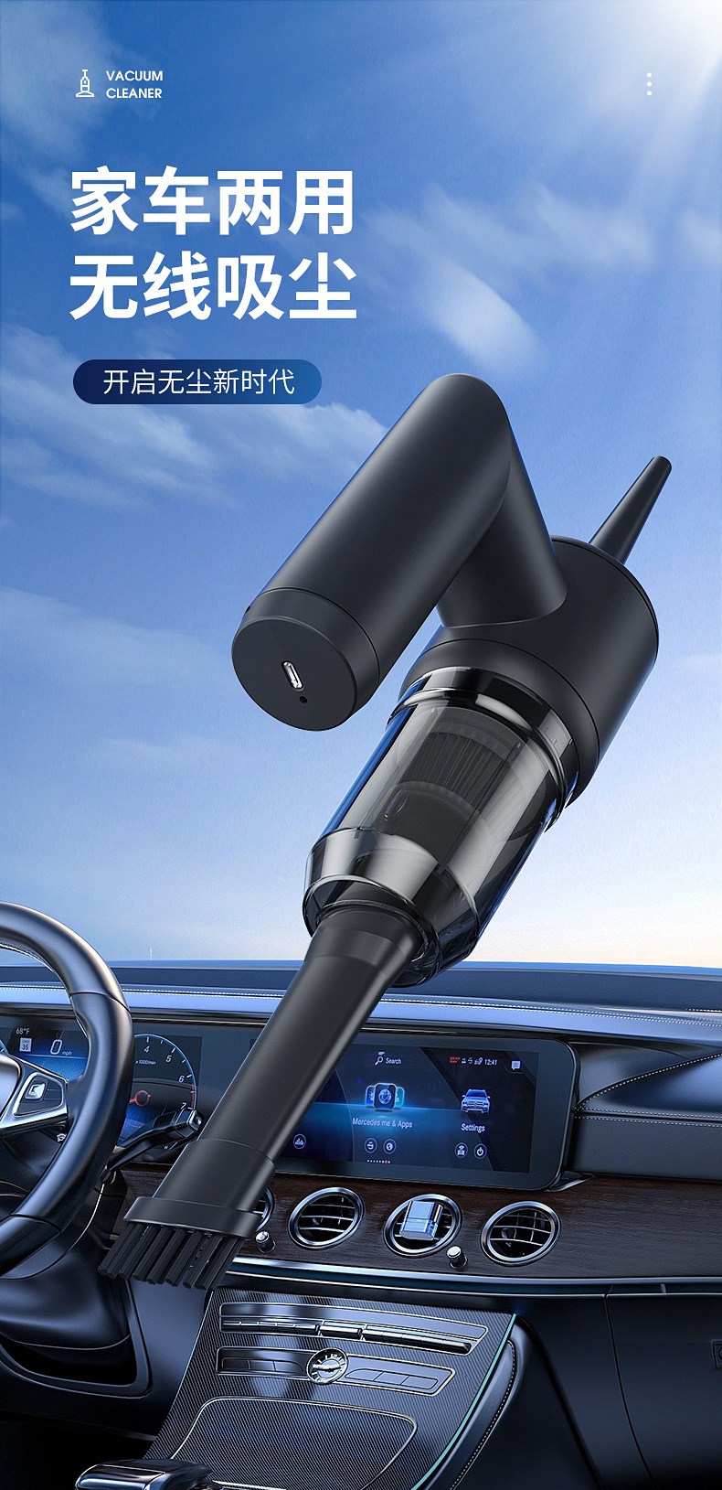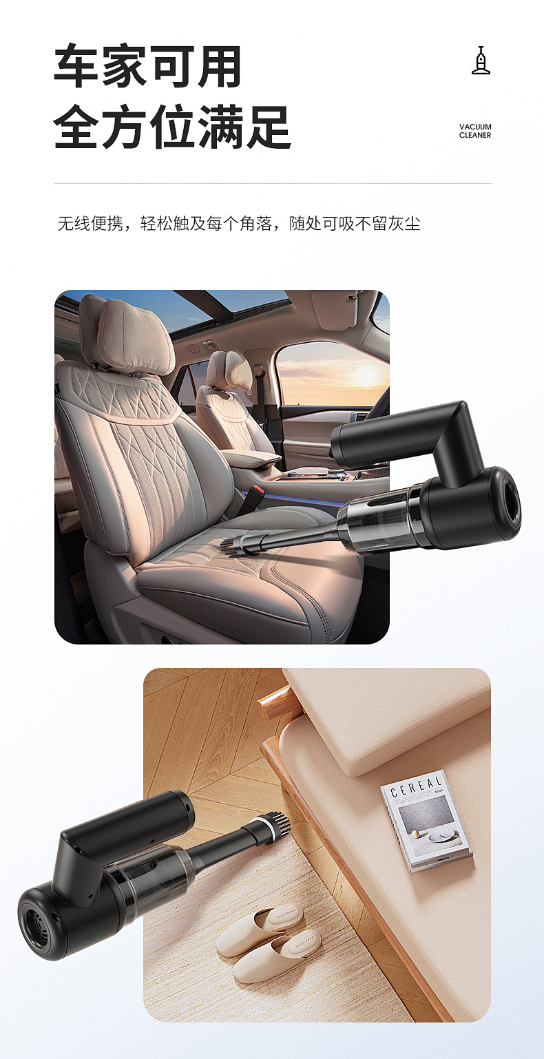新款车载家用吸尘器吸吹抽充四合一大吸力真吸尘无线快充静音工作