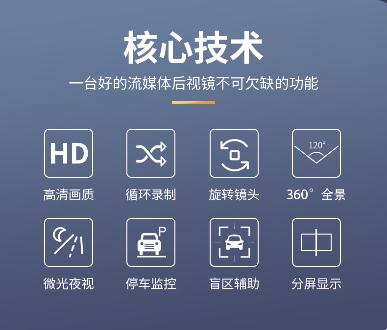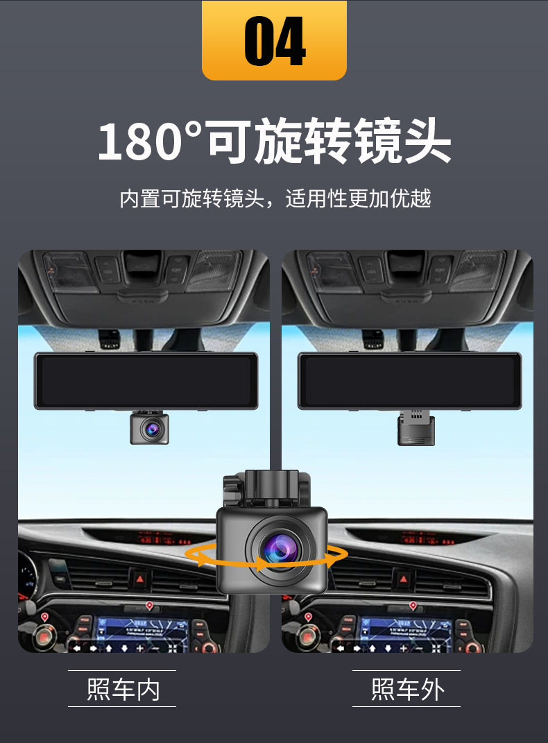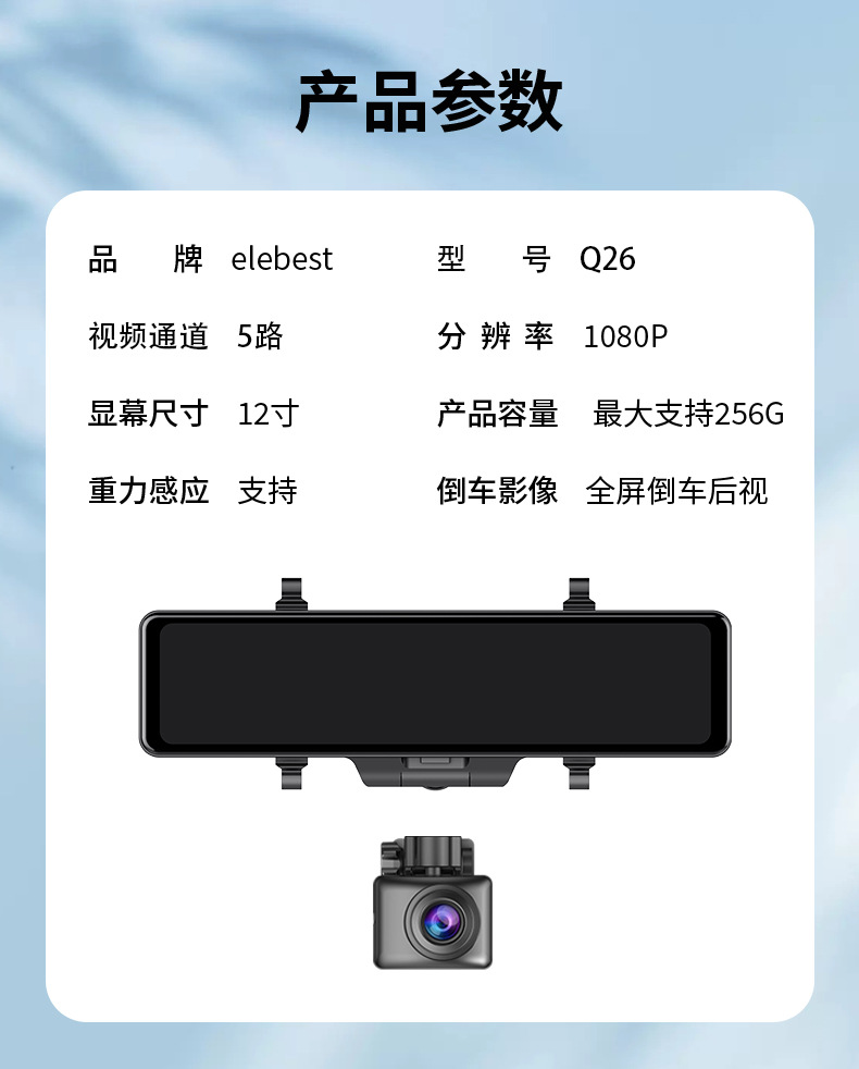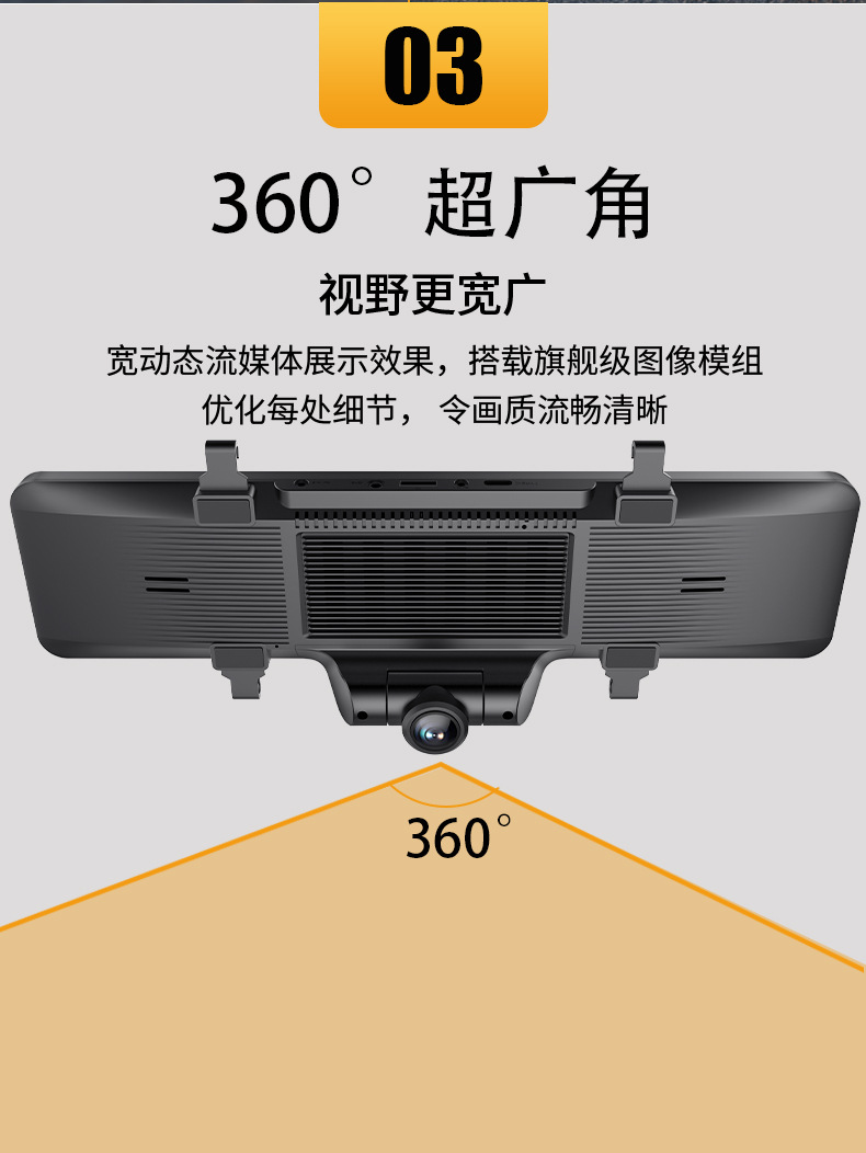 360度全景流媒体12寸夜视盲区视野5镜头1080P后视镜行车记录仪